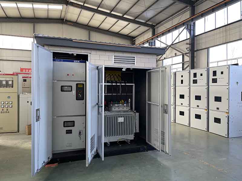 箱變是由:底座、外殼、頂蓋三部分構成。底座一般用槽鋼、角鋼、扁鋼、鋼板等,組焊或用螺栓連接固定成形;為滿足通風、散熱和進出線的需要、還應在相應的位置開出條形孔和大小適度的圓形孔。箱體外殼、頂蓋槽鋼、角鋼、鋼板、鋁合金板、彩鋼板、水泥板等進行折彎、組焊或用螺釘、鉸鏈或相關的專用附件連接成形。